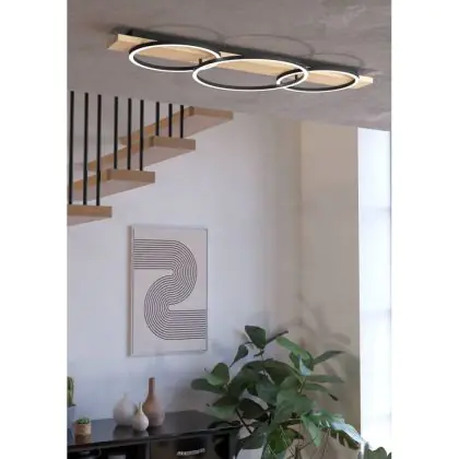 Eglo Plafondlamp Boyal Hout Zwart, Bruin 24W 3400lm - 830 Warm Wit
