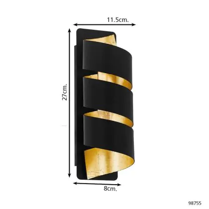 Eglo Wandlamp Elizondo Zwart, Goud | Geschikt voor E14