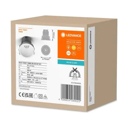 | Fabrikantnaam | LED SPOT RECESS TWIST PRO 70mm 5W 3000K White White | |