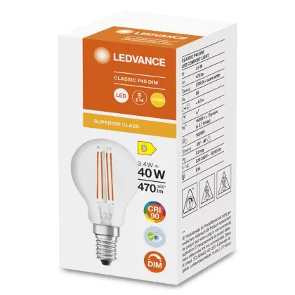 Ledvance Superior Classic LED E14 Kogel Filament Helder 3.4W 470lm - 927 Zeer Warm Wit | Dimbaar - Beste Kleurweergave