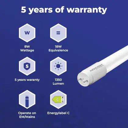 | Fabrikantnaam | Noxion Avant LEDtube T8 Extreme UO (EM/Direct) 600mm 8.4W/840 (18W eqv.) with Starter | |