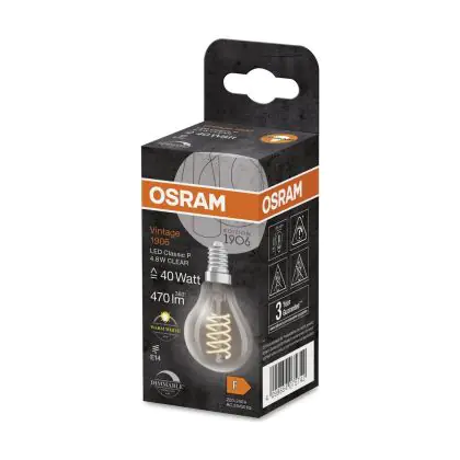 Osram Vintage 1906 LED Classic Slim E14 Peer Filament Helder 4.8W 470lm - 827 Zeer Warm Wit | Dimbaar - Vervangt 40W